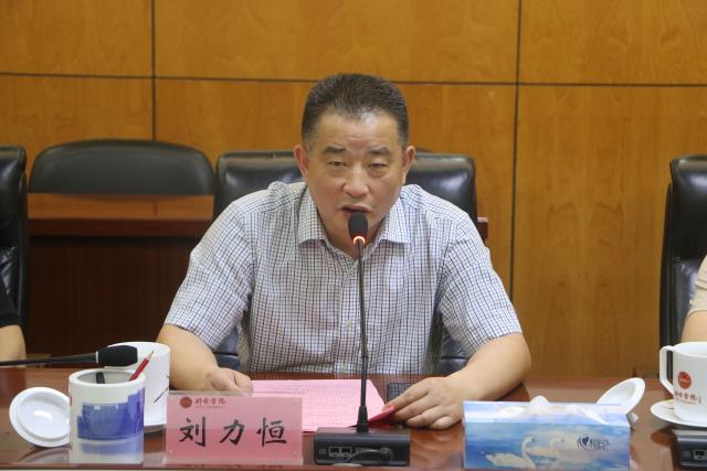 会上,刘力恒介绍了学校办学历史、办学特色,并回顾与美国多所高校交流合作,建立了深厚的友谊。