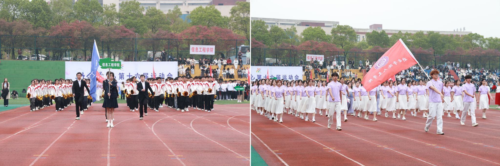 开幕式上,伴随着热情洋溢的运动会进行曲,各方阵队依次入场。国旗护卫队昂首挺胸,迈着坚定的步伐,护卫着鲜艳的五星红旗。各二级学院方阵身着特色服饰,迈着整齐的步伐,喊着响亮的口号入场,他们结合各自专业元素,融入优美动人的舞蹈、青春洋溢的健美操、现代与传统交织碰撞的情景展示、独具传统意蕴的舞狮表演,独特的创意、抖擞的精神,充分展现了taptap点点学子昂扬向上、追求卓越的精神风貌。教工队和裁判方阵紧随其后,他们手持花束,和着轻快的舞步,脸上洋溢着活力与微笑,成为开幕式现场一抹温馨的亮色。新院师生的这份精气神,既是对学校四十年发展过往成就的致敬,更是对未来征程的坚定承诺。