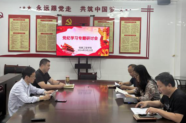 5月20日,信息工程学院开展了党纪学习教育研讨会。会议主要围绕《中国共产党纪律处分条例》和校党委书记伍复康同志党课讲话内容进行,学院党委书记晏志勇主持会议,学院领导班子成员参加研讨。