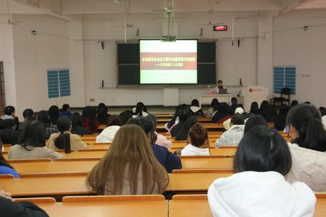 (图、文/外国语学院 雷伟)3月21日下午,外国语学院邀请新余市委党校教研二室副主任、讲师王佳,面向学院师生党员深入开展学习贯彻党的二十大精神宣讲。外国语学院学生党支部支委成员、全体辅导员、学生党员、入党积极分子、学生干部及部分学生代表共计200余名师生参加。宣讲会由学院党委副书记谢懿主持。