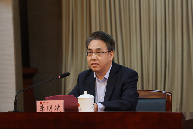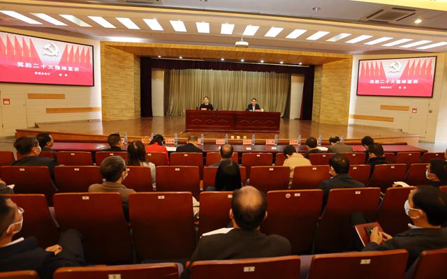 李明斌强调,全校上下要迅速把思想和行动统一到党的二十大精神上来,深刻领悟“两个确立”的决定性意义,增强“四个意识”、坚定“四个自信”、做到“两个维护”,始终同以习近平同志为核心的党中央保持高度一致。一是要围绕“学懂”下足功夫,采取多种形式,动员党员干部、教师原原本本学、联系实际学、学思践悟学,迅速掀起学习热潮。二是要围绕“讲好”下足功夫,依托校院领导、马克思主义学院宣讲团、辅导员宣讲团、大学生理论宣讲团等宣讲队伍,邀请校外专家学者,深入师生开展宣讲活动,实现党的二十大精神宣讲全覆盖。三是要围绕“弄通”下足功夫,进一步加强理论研究和学理阐释,形成一批有分量、高水平的研究成果。四是要围绕“做实”下足功夫,深入贯彻落实党的二十大精神,紧密联系学校实际,按照“选树标杆争创一流”的要求,努力把各项工作做得更好,用心用情用力谱写新时代学校高质量内涵式发展的新篇章。
