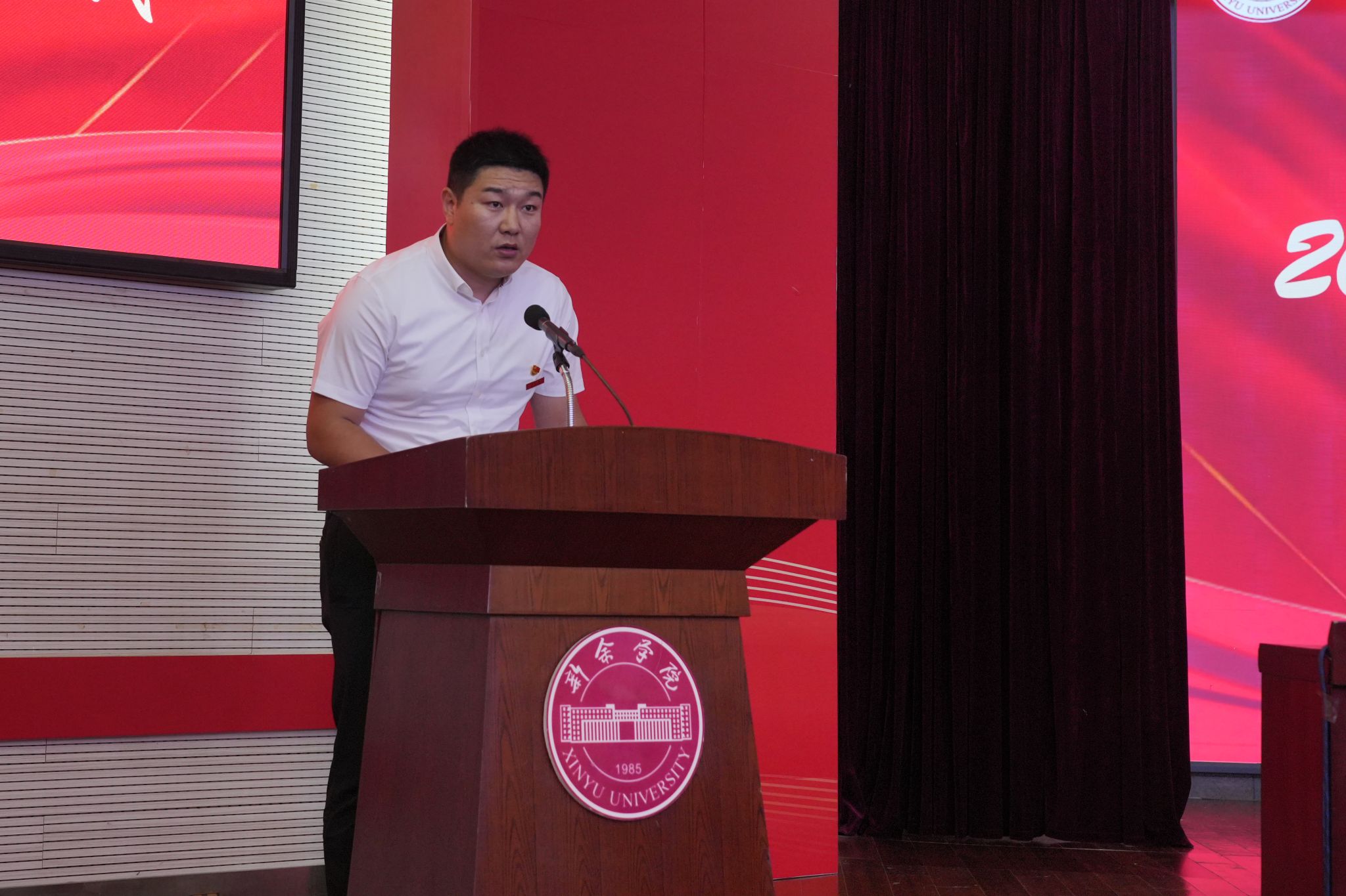 李壮博士代表2025年新入职教师发言。他结合入职体验谈感受,学校优美的育人环境、浓厚的学术氛围、师生积极向上的精神风貌给他留下了深刻印象,领导的关怀、同事的热心、大家团结协作的氛围,让他倍感温暖与自豪,也格外珍惜这份职业选择。作为教育路上的“新兵”,他将把每一堂课都当作成长的历练,用心、用爱与责任陪伴每一位学生成长,不断提升自身科研实力,为学校的学科建设添砖加瓦。