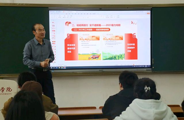 为深入贯彻2024年全国两会精神,近日,学校党政班子成员先后走进思政课堂教学一线,以《筑梦现代化共绘新图景——学习2024年全国两会精神》等为题,面向不同学院、不同专业的师生进行专题讲授,用鲜活的事例、严谨的逻辑,为同学们带来了一堂堂生动的“形势与政策”课。