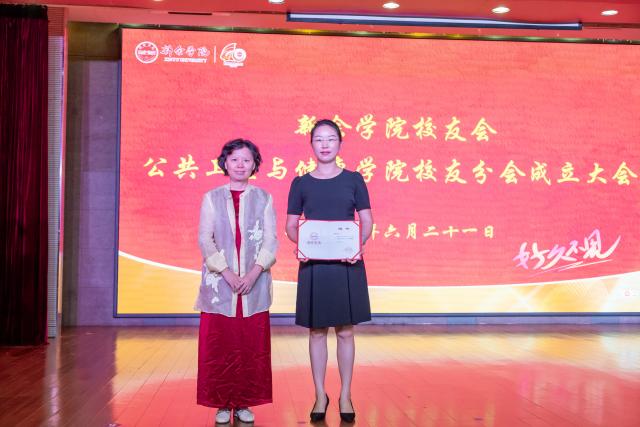 大会选举成立了taptap点点官方网站校友会公共卫生与健康学院校友分会第一届理事会组织机构,龚丽春为组织机构成员颁发聘书。