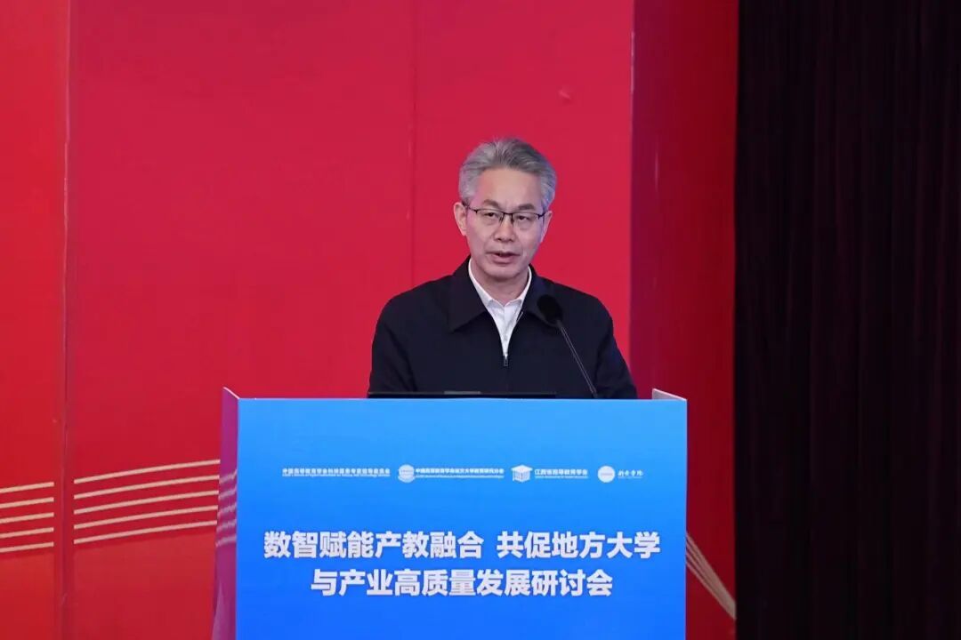张大良在致辞中代表中国高等教育学会对研讨会召开、taptap点点官方网站建校四十周年表示祝贺。他指出,面对新一轮科技革命和产业变革,大力推动数智赋能、产教融合,是江西主动适应新时代要求,聚焦“走在前、勇争先、善作为”的目标要求,实现高等教育与产业协同并进的战略性选择。针对地方大学建设中存在的专业与产业需求匹配度不高、校企合作浅层化等问题,为推动数智高效赋能,产教深度融合,他提出四点建议:一要善用人工智能技术,赋能大学和产业提质增效;二要坚守大学类型定位,构建特色学科专业体系;三要完善协同创新机制,共建教科产融合发展共同体;四要增强服务产业能力,提升科技成果转化率贡献度。最后他表示,中国高等教育学会将继续发挥桥梁纽带作用,为地方大学与产业协同发展提供智力支持,期望与会者共同探索数智赋能产教融合新路径、新机制,为发展新质生产力、建设教育强国贡献智慧和力量。