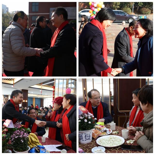 在家的校党政班子成员,退休老领导、老教师,优秀教师和学生代表,党外代表人士,困难职工以及物业服务人员代表等共计近240人齐聚一堂,喜迎新春佳节。