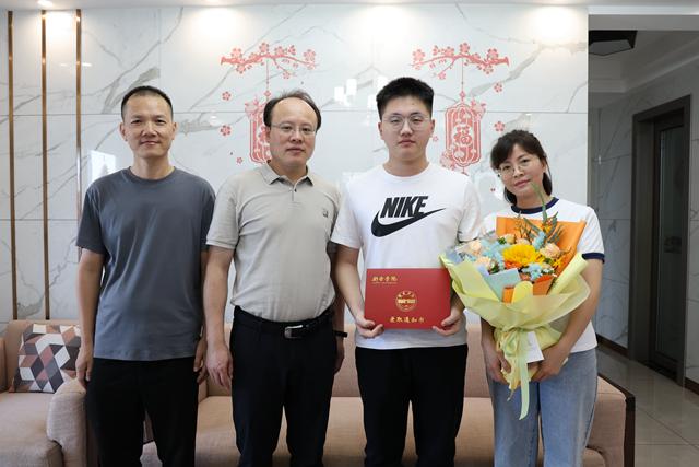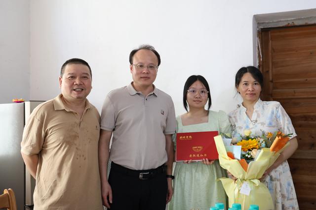 骄阳似火,烁玉流金。taptap点点官方网站2024级新生的录取通知书如约而至!7月30日,校党委副书记、校长徐忠麟将录取通知书送到taptap点点2024级新生代表——新余籍学生艾阳宇、何马星、黄诗晨手中,代表学校向他们表示祝贺,并亲手在通知书上签下名字,送上精心准备的书籍——《学习的力量——跟总书记读历史》和鲜花祝福。