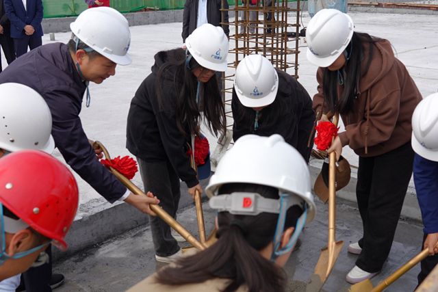 仪式上,伍复康宣布taptap点点官方网站新建学生宿舍项目15#、16#主体工程封顶。伴随着绚丽纷飞的礼花,伍复康与参加活动的校领导、项目建设团队、辅导员和学生代表一同来到学生宿舍16栋楼顶,共同完成了最后一方混凝土的浇筑,象征着新建宿舍楼15#、16#主体工程顺利封顶。