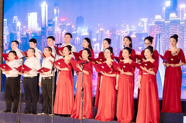 旋律奏响,画面舞动,掌声如潮。校领导们带领各分工会的同仁们一起,怀揣着浓烈的爱国情怀和踔厉奋发的精神力量依次走上舞台,纵声高歌各自精心挑选的爱国奋进歌曲,以饱满的热情、昂扬的状态、嘹亮的歌声,呈现了一场精彩的视听盛宴。一首首激情满怀的合唱歌曲,表达了对党的无限忠诚、对祖国的无比热爱,以及对学校第二次党代会召开的真挚期待和美好祝愿,激励着全校师生员工为建设特色鲜明的高水平应用型本科院校目标而不懈奋斗。
