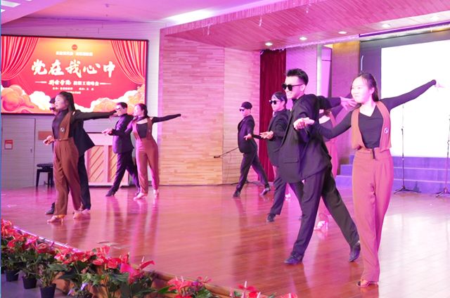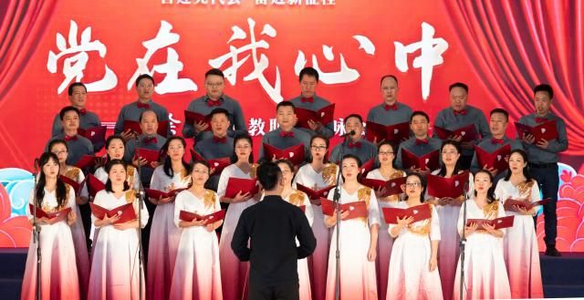 晚会在艺术学院群舞《金色摇篮》激昂澎湃的节奏中拉开序幕。党群和行政一分工会的合唱《游击队之歌》和《我们走在大路上》让我们想起在密林高冈、黄土青沙间吹响的游击号角,中华民族绵延五千年的文化激荡于胸,振奋起迈向新征程的信心,团结起奔向新未来的斗志;数计学院和中兴通讯信息学院分工会带来《唱支山歌给党听》《没有共产党就没有新中国》,嘹亮的歌声赞颂了中国共产党的千秋伟业,振奋人心;机电工程学院和外国语学院分工会带来的《同一首歌》《不忘初心》把我们一份共同的信仰——中国共产党唱出心怀,唯有初心如磐,方破道阻且长;经济管理学院和新能源学院演唱的《奉献》和《中国,中国,鲜红的太阳永不落》充分展示了共产党人无私无畏的奉献精神,把许党报国、履职尽责作为人生目标,不畏艰险、敢于牺牲,苦干实干、不屈不挠,才能绘就出中华民族波澜壮阔的奇景。