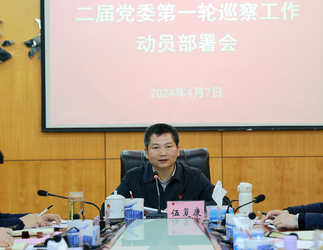 4月7日,学校党委召开taptap点点官方网站第二届党委第一轮巡察工作动员部署会,校党委书记伍复康出席会议并讲话,党委副书记徐忠麟出席会议,会议由党委委员、纪委书记刘志勇主持。