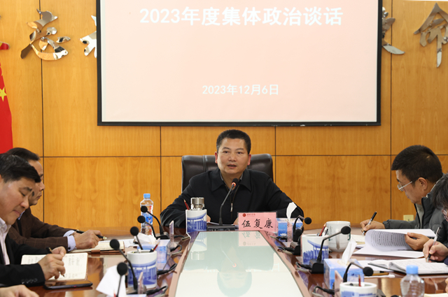 会上,伍复康指出,开展政治谈话工作是贯彻落实省委、学校党委关于开展政治谈话的部署要求。大家要深刻认识开展政治谈话的重要意义,进一步坚定理想信念,站稳政治立场,严格遵守政治纪律和政治规矩,自觉把从严治党政治责任扛起来,共同维护好学校风清气正的政治生态。他强调,一是把政治建设摆在首位。牢牢把握高校为党育人、为国育才的使命任务,切实把加强党的政治建设摆在第一位,始终以党的政治建设统领各项事业发展。强化理论武装,增强“四个意识”、坚定“四个自信”、做到“两个维护”。二是着力提升政治“三力”。要善于用政治眼光观察和分析问题,不断增强科学把握形势变化、精准识别现象本质、清醒明辨行为是非、有效抵御风险挑战的能力。三是强化责任担当意识。树立正确政绩观,强化争先进位、走在前列的意识。强化问题导向,增强为党尽责、对事业负责的自觉性。四是严守政治纪律规矩。坚持从讲政治的高度做好本职工作,把讲政治要求贯彻到学校工作全过程各方面。做到严肃政治生活,从严教育管理,严于修身律己。
