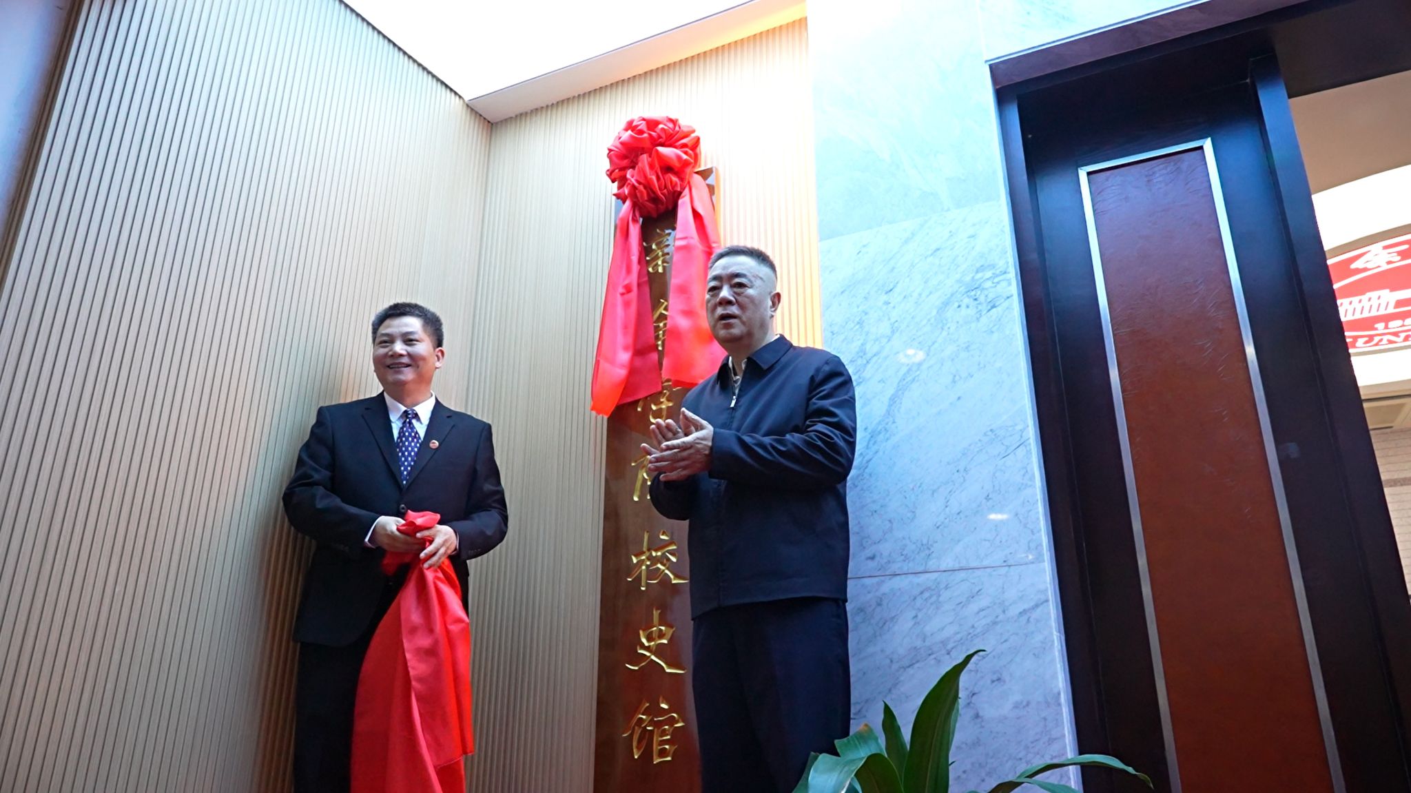 会前,朱虹参观了学校校史馆,为新改造完工的校史馆揭牌。