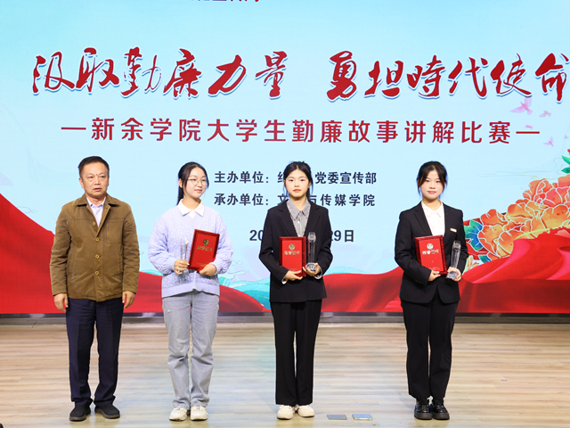 本次比赛由选手刘先翔讲解周恩来的勤廉故事拉开帷幕,选手们精心准备,将饱满的感情投入故事的讲解当中。在铿锵有力的语调中展现了每一位选手对于勤廉的理解和对故事人物的敬佩。一生投入女子高中办学事业的张桂梅、勤政为民攻坚克难的焦裕禄、献身于荒山成就了林海的杨善洲等慷慨激昂的故事讲解使观众响起热烈掌声。最终,文学与传媒学院李艺荣获一等奖,文学与传媒学院齐梦甜和公共卫生与健康学院杨金娥荣获二等奖,新能源科学与工程学院黄灿等名选手分别获得三等奖和优胜奖。颁奖结束后,校领导和选手上台合影。