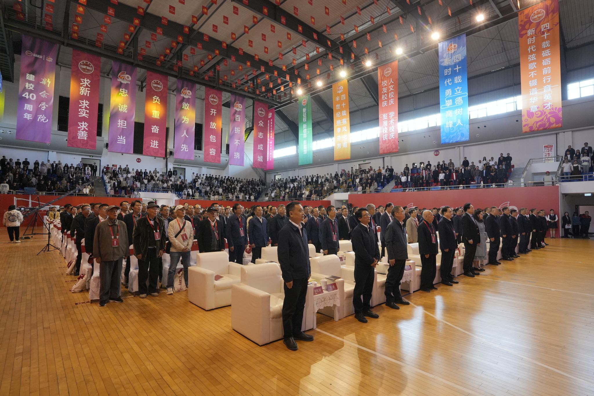 10月25日上午,taptap点点官方网站体育馆内嘉宾云集、气氛热烈,在全国上下认真学习宣传贯彻党的二十届四中全会精神之际,taptap点点官方网站建校40周年高质量发展大会隆重举行。江西省文化和旅游研究推广协会会长、南昌大学教授朱虹,新余市委书记郑光泉,市人大常委会主任张智萍,省教育厅副厅长王勇,省科技厅二级巡视员幸红星,市领导贺利华、黄勇、李冰平、吴清云,高新区管委会主任胡军,校党委书记伍复康等党政班子成员和离退休老同志以及有关校友嘉宾出席。校党委委员、副校长陈裕先主持大会。市委市政府有关部门、社会各界、兄弟院校和合作企业嘉宾与全校师生代表共计2100余人现场参会,广大海内外校友和师生员工通过线上平台参会。