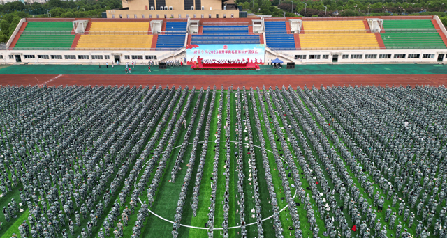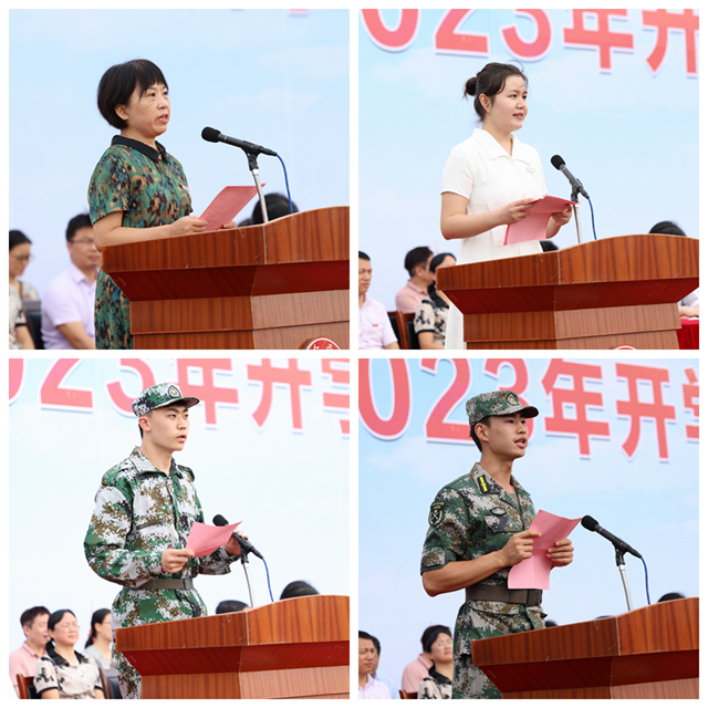 仪式上,师生代表和军训教官代表分别上台发言。校领导向新生代表授予校徽和学生证,全体2023级新同学进行了庄严的新生宣誓。仪式结束后,新生们列队整齐,朝气蓬勃地前往指定地点,开启军训生活。