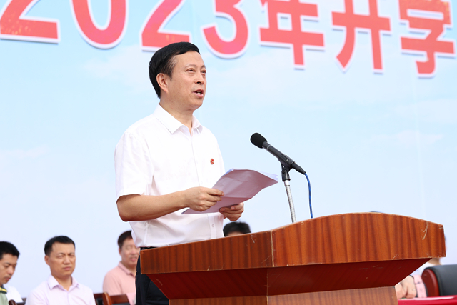 迎着蓬勃的朝阳,伴着嘹亮的国歌,旗手迎风振臂,仪式正式拉开帷幕。张玉清代表学校对2023级新同学的到来表示热烈欢迎和诚挚问候,并简要介绍学校基本情况。就如何度过充实而有意义的大学时光,张玉清要求,一是立志担当,上好“家国情怀”的信念大课,厚植家国情怀,坚定理想志向。二是正视迷茫,上好“发现自我”的青春大课。三是磨炼自己,上好“自找苦吃”的成长大课,要善于在学海中自找苦吃,乐于在实践中自找苦吃,勤于在锻炼中自找苦吃。四是练就本领,上好“融合创新”的专业大课,养成踏实学习的习惯,培养开拓创新的思维。
