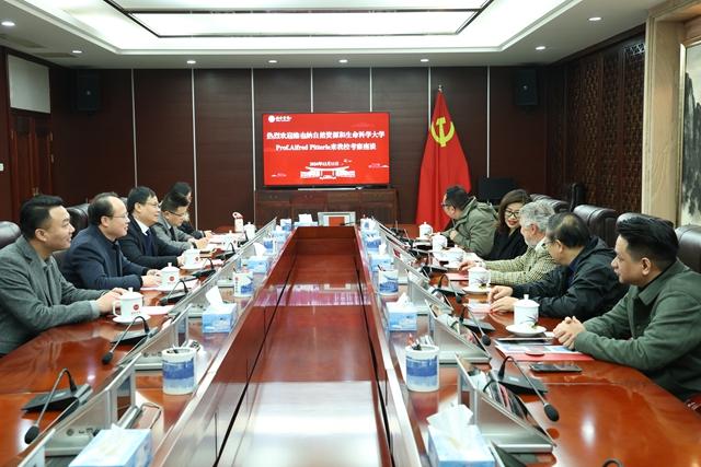 座谈会上,徐忠麟对皮特勒教授一行的到来表示热烈欢迎,并对皮特勒教授为推动中奥两国在科技、教育等领域的交流与合作所做出的不懈努力和杰出贡献表示由衷的敬意。他表示,皮特勒教授作为在生态学领域享有盛誉的国际知名学者,不仅以其深厚的学术造诣引领着学科前沿,更以实际行动践行了促进国际友谊与合作的精神,特别是他亲自倡导并成立的江西无废城市可持续发展项目组,为我省的生态文明建设贡献了宝贵的智慧与力量。