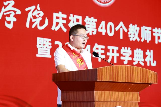 来自数学与计算机学院的相中启作为优秀教师代表发言,他分享了自身入职、从教、成长的故事,感谢学校提供的各类平台,表示将继续严以待己,不断加强师德修养和提高教书育人的能力和水平,把个人理想、本职工作和学生的成长成才紧密联系在一起,立志成为有理想信念、有道德情操、有扎实学识、有仁爱之心的“四有”好老师。