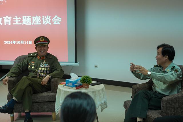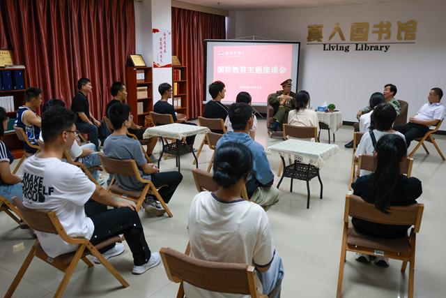 随后,在学校图书馆活动室召开了“国防教育主题座谈会”,与学生面对面对话活动,刘勇、臧雷在学校党委委员、副校长刘力恒的陪同下,与部分学生代表及退役军人代表20余人亲切座谈。会上,刘勇、臧雷与大家一一互动,耐心解答学生们的提问。刘勇分享了“理解万岁”口号提出的时代背景,阐释了理解文化蕴含的深邃思想和人文情怀,以30多年前亲身经历的前线战场上发生的感人英雄事迹为例,阐述了什么是英雄,如何理解英雄,新时代怎样传承英雄精神。通过自己部队生活与大学生活的对比,刘勇指出,我们生活在不同的时代,却拥有一样的青春。不同的经历决定了我们的生活方式和观念会有碰撞,这就需要我们互相理解。理解英雄首要的是理解崇高,理解英雄意味着理解责任使命和担当,只有理解英雄才能成为英雄。臧雷对学校高度重视国防教育和红色文化育人工作感到欣慰,他希望学校进一步加强爱国主义教育,增强师生国防观念和忧患意识,引导师生以英雄为榜样,学习他们不怕艰难困苦的革命英雄主义精神和勇挑重担的人生态度,珍惜革命先烈们用鲜血和生命换来的美好生活,争当新时代英雄。