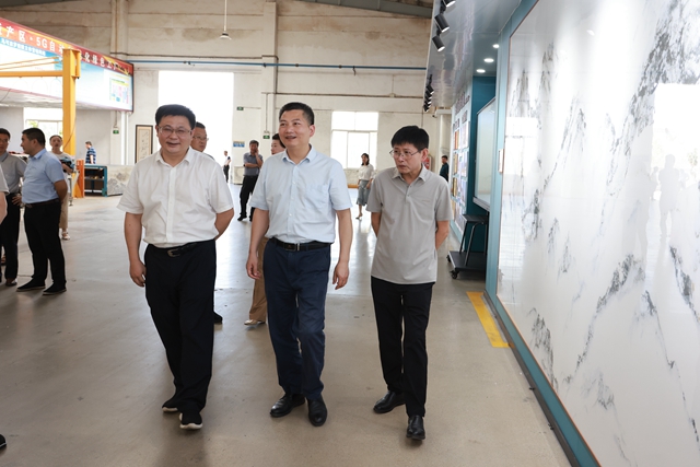 来到江西唯美陶瓷有限公司车间,考察团一行参观马可波罗岩板绿色智能生产线,了解企业在围绕文化艺术与陶瓷产业融合,加大创新力度、完善生产工艺、加快转型升级等方面取得的成效。