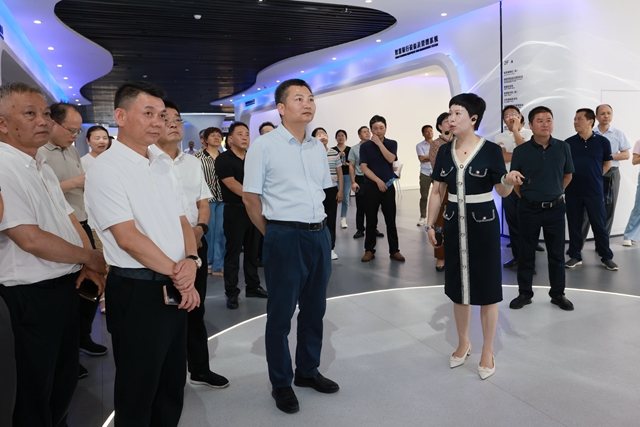 在金虎集团,考察团一行参观了该公司展示的无人化智慧档案馆库、智慧银行设备等产品,详细了解企业不断创新求变,以“智造”提升产业核心竞争力等情况。