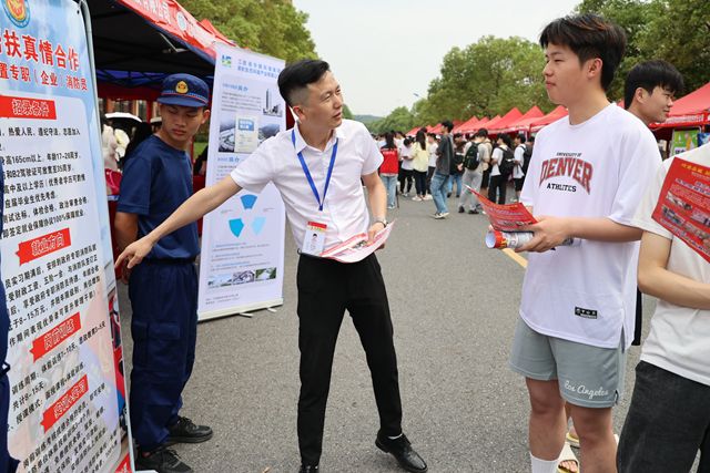 伍复康等领导深入现场了解本次招聘会组织情况和毕业生应聘情况,与用人单位招聘负责人亲切交谈,希望用人单位为毕业生提供更多的就业机会,并鼓励2024届毕业生充分展现自我,树立“先就业、再择业”的就业观,抓住求职应聘黄金期,早就业,就好业。各企业招聘展位人头攒动,毕业生们根据自身条件和岗位需求,穿梭于各展位前,认真查看招聘信息,积极与意向单位进行沟通洽谈,广泛了解就业市场动态。来自新能源学院的毕业生张子祥同学表示:“校园招聘会能够让我们与企业进行面对面的交流,更加深入了解岗位需求与职业选择,提供的许多岗位也符合未来的规划与发展,是一个很好的就业平台。”