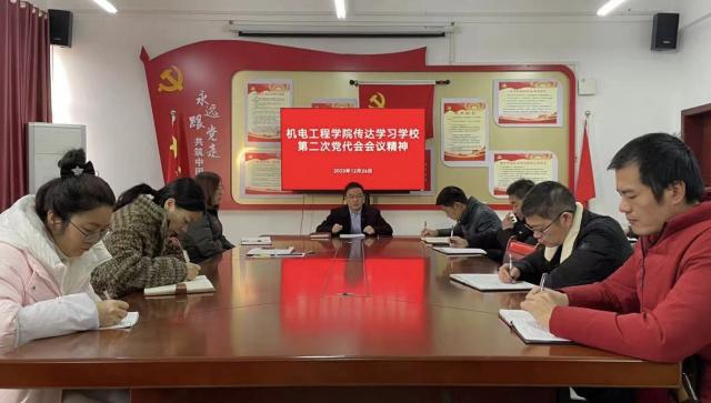 为深入学习宣传贯彻学校第二次党代会精神、落实学校决策部署,12月26日,机电工程学院召开传达学习学校第二次党代会精神会议。会议由学院党委负责人陈枭主持。