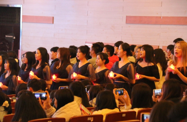 最后,本次活动在歌曲《灯火里的中国》中结束,灯火里的中国繁华似锦、安详宁静!灯火里的中国奋发图强、生生不息!灯火里的人民幸福美满,祖国繁荣富强,时代蓬勃发展!在这美丽的时刻,激发了在场师生的爱国热情,大家共唱歌曲《我爱你中国》,淳朴真诚的心声化作跳动的音符,饱含着在场师生对祖国最深沉的爱。