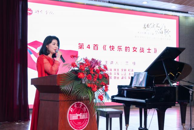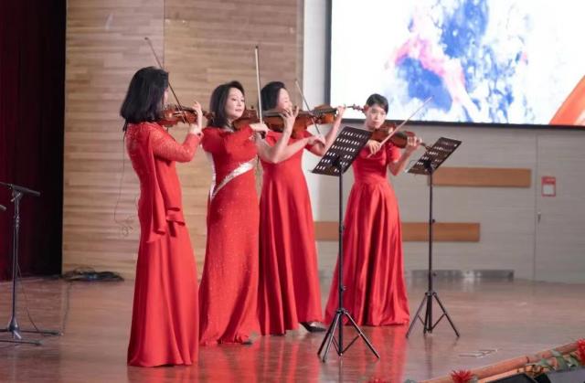 《满怀深情望北京》抒发了石油人的爱国情怀,唱出了石油人一心向党的坚定信仰,兰佳老师与文一旋老师合作演奏了这首具有强烈感染力的歌曲,将石油铁人的精神通过音乐生动展现。随后,兰佳老师详细介绍了中国第一部芭蕾舞剧《红色娘子军》中的代表作《快乐的女战士》,描绘了她们投身革命的热情及争取自由、平等的热切期望。