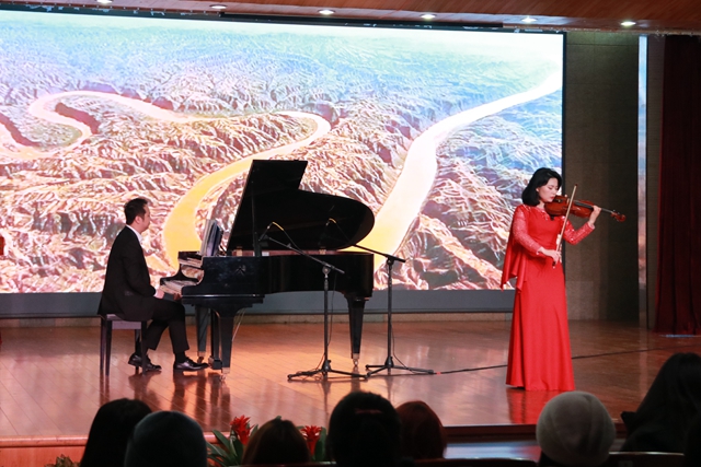 兰佳老师首先为大家带来小提琴独奏《梁祝》的讲解。这部作品是中国传统音乐的瑰宝,蕴含着丰富的文化内涵。通过小提琴与钢琴激情洋溢的演奏,让听众增强了民族自信和文化自信。接着,兰佳老师生动介绍了陕北民歌《山丹丹开花红艳艳》豪放的音乐风格,表现了陕北人民的美好憧憬与热切期盼。随后,四把小提琴与钢琴共同将陕北民歌的独特魅力呈现给观众,引发了观众的强烈共鸣。