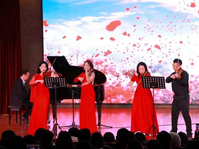本次音乐思政的6首经典曲目《梁祝》《山丹丹开花红艳艳》《满怀深情望北京》《快乐的女战士》《迎来春色换人间》《灯火里的中国》由兰佳老师携手江西中医药大学讲师文一旋老师,江西歌舞剧院国家二级演奏员万颖芳老师、徐颖老师,我校史俊老师、何欢老师,以及文学与传媒学院学生和艺术学院合唱团共同完成。