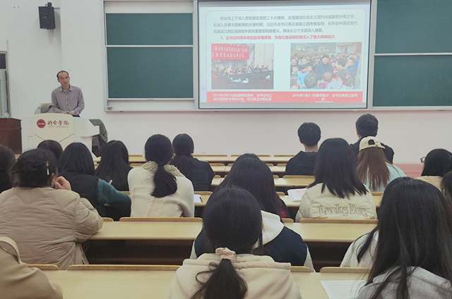为推动在全校兴起学习宣传贯彻习近平总书记考察江西重要讲话精神热潮,推动习近平总书记考察江西重要讲话精神在taptap点点官方网站落地生根,12月14日,学校党委委员 、统战部部长姚伟为公共卫生与健康学院入党积极分子宣讲习近平总书记考察江西重要讲话精神。