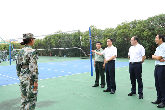 9月21日下午,校长张玉清、校党委副书记徐忠麟等校领导来到军训现场看望慰问军训教官和参训的2023级新生。