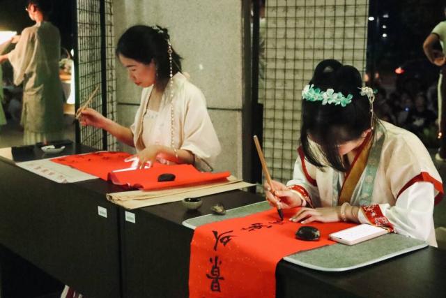张玉清、徐忠麟、李敏等校领导走到同学们当中,和同学们一道观晚会、赏明月、品月饼,一起参与剪纸、投壶、书法、手工、猜灯谜等传统文化活动,共同品读中秋文化,涵养家国情怀,并为同学们送上了美好的中秋祝福。本次活动立足文学与传媒学院专业特色,结合时代主题,将中华传统文化、国学经典等中华元素与创新的活动形式有机结合,充分发挥了文化育人功能,营造了奋进文化氛围,奉献了一场花好月圆、喜庆祥和的视听盛宴。
