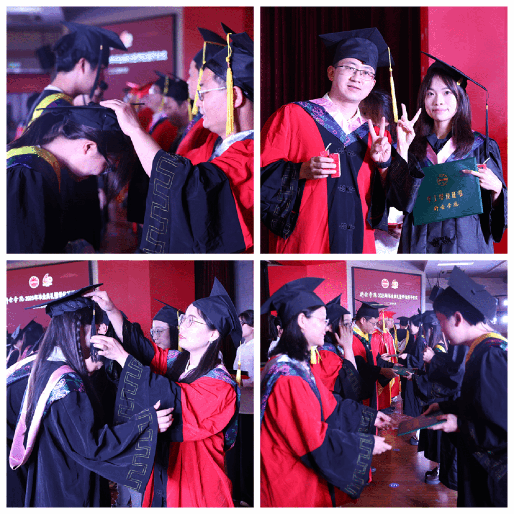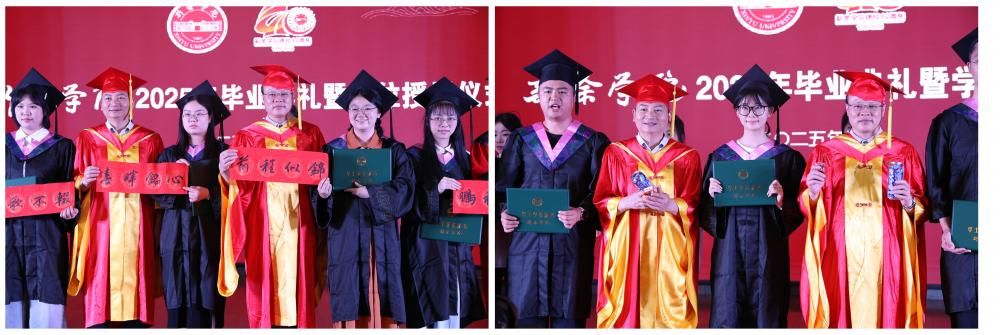 典礼最后,校领导为同学们授予学位、颁发学位证书,为其扶苏拨穗,亲切握手祝贺并合影留念。毕业生们也以各自方式向老师表达四年陪伴和教导的感恩之情。