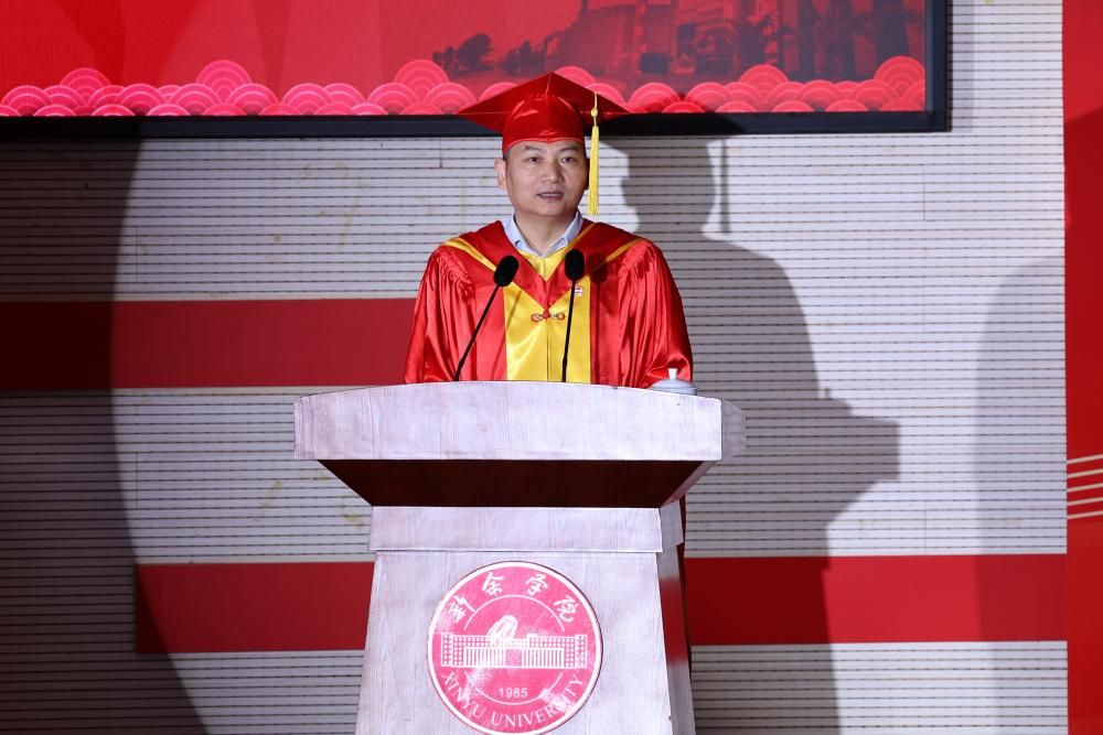 教师代表——人文学院辅导员雷伟老师在临别之际,殷切嘱托毕业生们,要珍视健康,守护身心,做自己人生的第一责任人;要脚踏实地,持续学习,在平凡中铸就不凡;同时心存善念,保持温度,在人际连接中汲取力量。