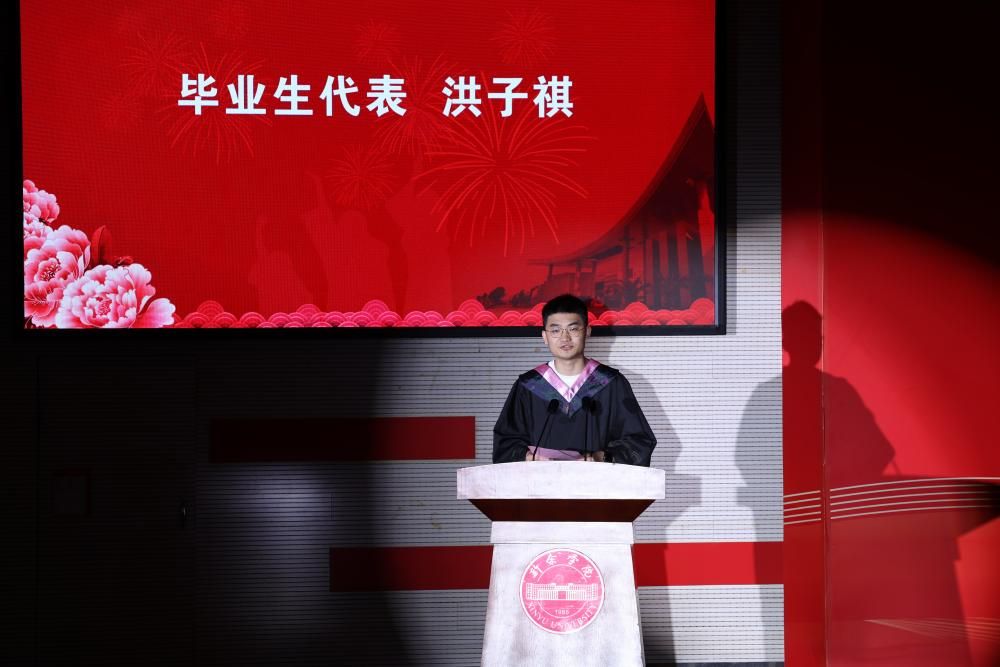 毕业生代表——经济管理学院21级市场营销1班洪子祺,回首了大学四年时光,他表示,在与母校相伴的1345个日夜,收获的不仅是知识的积淀,更是品格的淬炼。这段岁月馈赠的精神财富,终将成为照亮未来征途的永恒星光。
