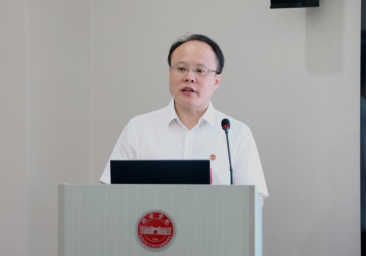 见面会分两个阶段进行。第一阶段由江西省教育评估监测研究院党委委员、副院长罗运锋主持,校党委书记伍复康、新余市人民政府副秘书长邓浩分别致辞,校党委副书记、校长徐忠麟介绍学校师范教育整体情况,省教育厅教师工作处副处长缪圣勇讲话。