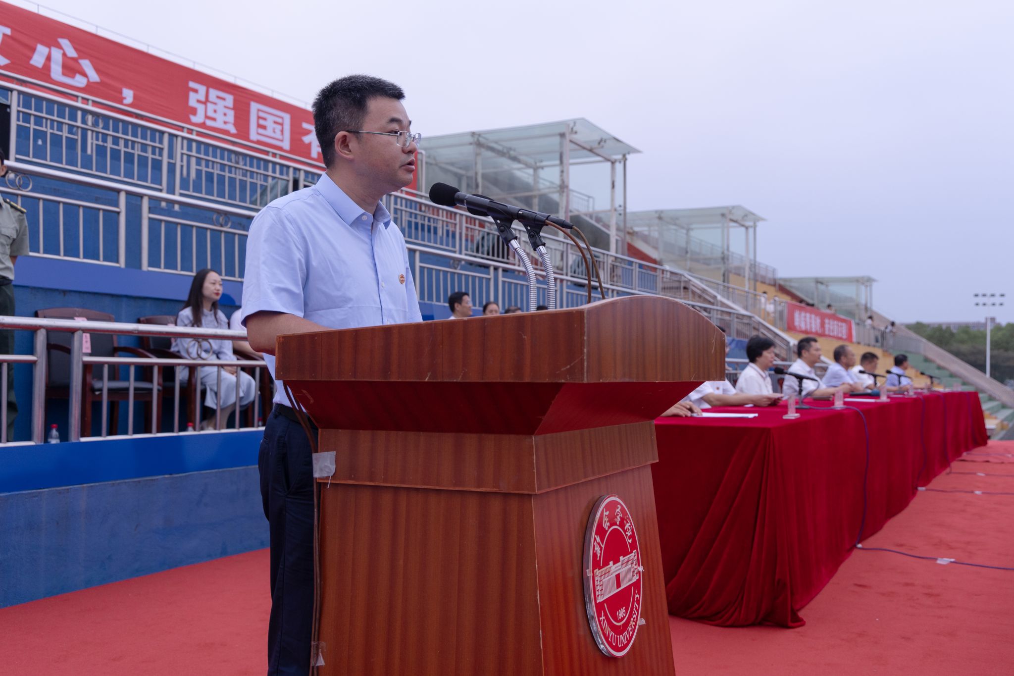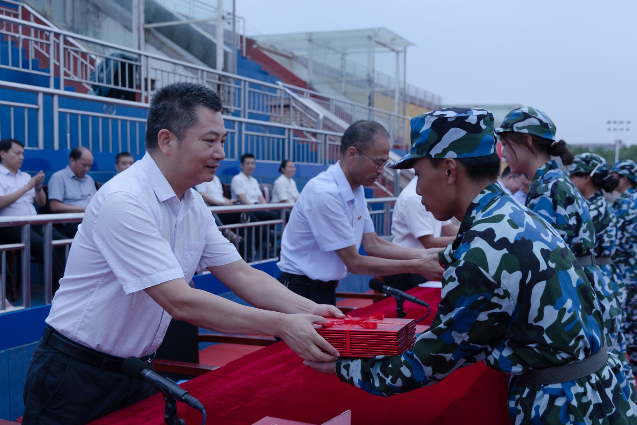 校党委委员、副校长黄益宾代表学校党委、行政,向顺利完成军训任务的全体同学表示热烈祝贺,向付出辛勤努力的承训部队教官和工作人员表示衷心感谢。他表示,同学们顶骄阳、战酷热,在教官指导下从基础队列训练到军体拳术学习,实现了从忐忑不适到步伐铿锵、口号嘹亮、眼神坚定的蜕变——“晒黑了皮肤却挺拔了脊梁,磨破了脚掌却锤炼了意志,洒下了汗水却收获了成长”,为“大学第一课”交出优异答卷。他强调,军训不仅是一次体能的锻炼,更是一次精神的洗礼和作风的养成,全体新生要把在军训中养成的良好品德、过硬作风和坚强意志带到今后的学习生活中去:要坚定理想信念,胸怀家国,把人生理想融入国家和民族的事业中;要保持奋斗姿态,勤学笃行,刻苦钻研专业知识,积极投身实践锻炼,练就过硬本领;要严守纪律规矩,修身立德,将军训中的纪律意识、规则意识内化为日常行为规范,锤炼高尚品格;要凝聚集体力量,团结互助,以学校建校40周年为契机,为校园文化繁荣发展凝聚智慧、贡献力量。