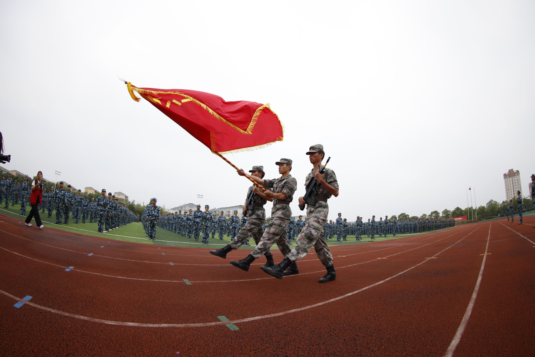 伴随着响亮的口令,护旗方阵出列,《义勇军进行曲》奏响,总结大会正式开始,2025级3700余名军训学生以饱满的精神状态展现训练成果。
