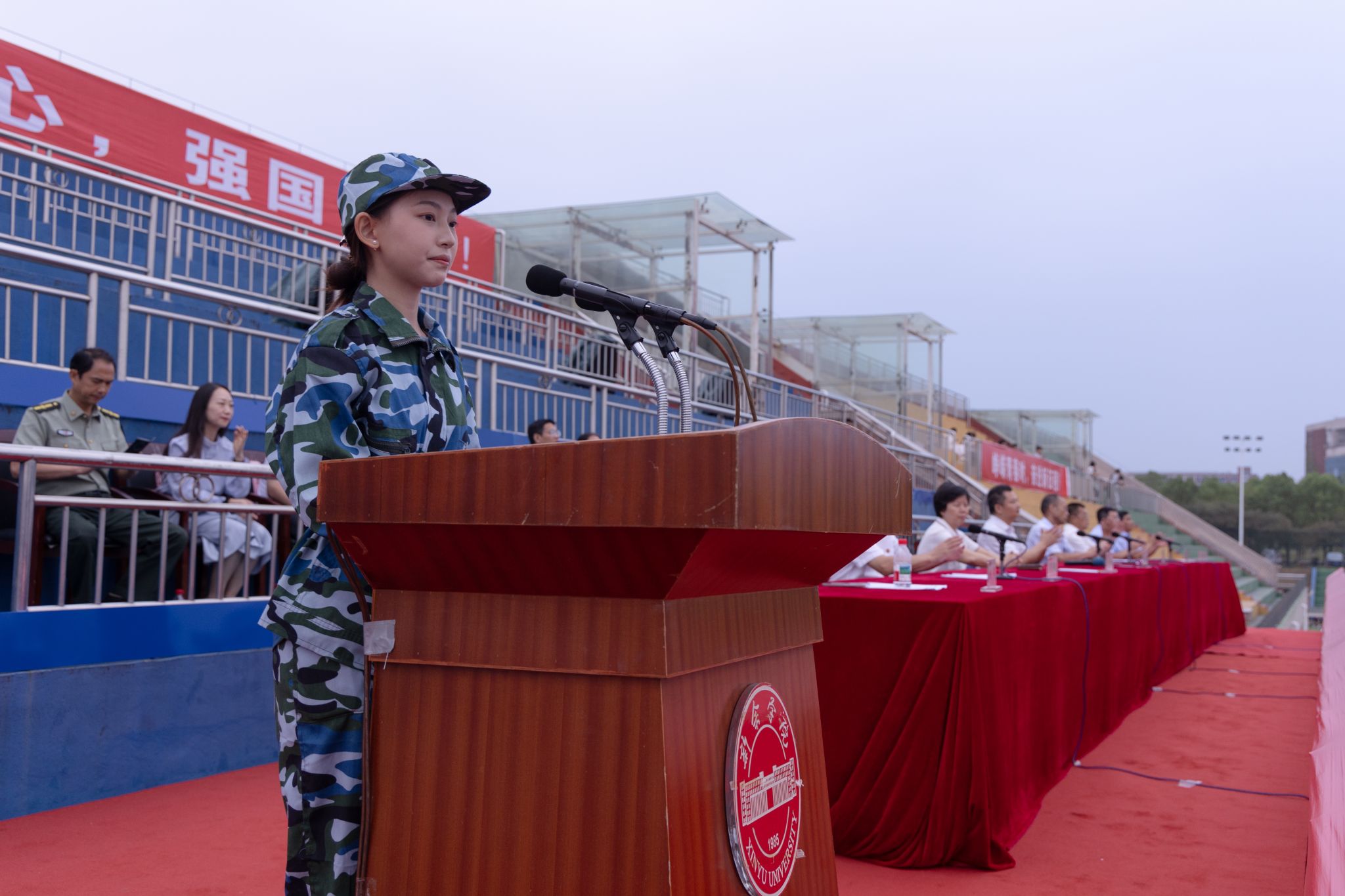 2025级播音与主持艺术专业李偲颖作为参训学员代表发言。她分享了军训期间的收获与感悟,对教官的辛勤指导和老师的亲切关怀表达感谢,并号召全体新生将军训中培养的坚韧精神和纪律意识延续到今后的学习生活中,努力成长为有理想、敢担当、能吃苦、肯奋斗的新时代好青年,在推进强国建设、民族复兴伟业中展现青春作为、彰显青春风采、贡献青春力量,奋力书写为中国式现代化挺膺担当的青春篇章。