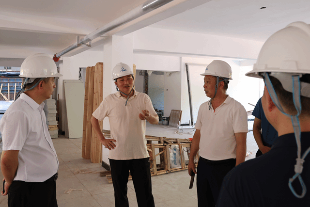 在主教学楼A座三楼的教师休息室内,工人师傅们正在搬运装修材料,装修工程进展顺利,预计开学可投入使用。伍复康要求,改造教师休息室是学校打好幸福提档攻坚战的具体举措,有关部门要按照计划,扎实推进,要把教师休息室打造成“家庭式的会客厅”,让老师们感受到学校的关心和温暖。