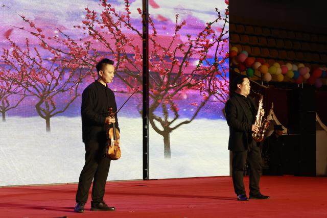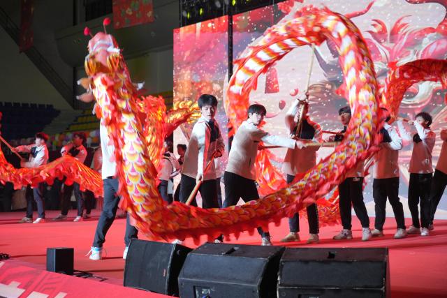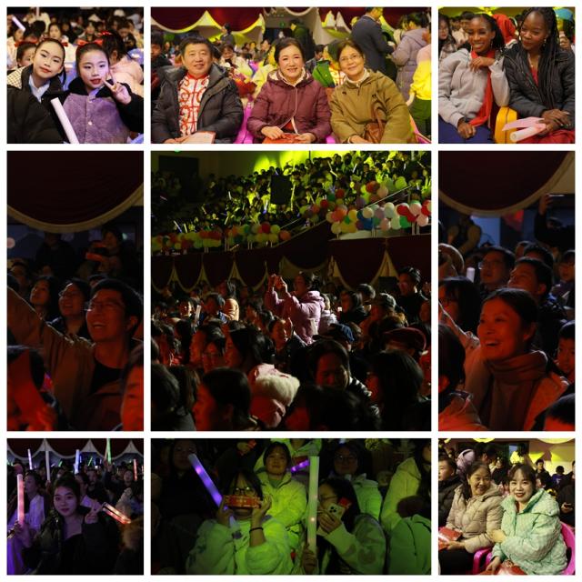 文艺晚会共分为三个篇章——“话往昔,岁月如歌”“迎新春,欢聚一堂”“创未来,砥砺前行”,邀请优秀校友返校与学校师生共同担任晚会主持。一曲由艺术学院合唱团带来的优美恢宏的校歌合唱——《驭马腾驰》拉开了晚会的序幕,体育学院舞龙队《龙腾虎跃》将现场喜庆热闹的气氛点燃,歌伴舞《幸福中国一起走》像一团火温暖着冬季,又像一股清风温润在场观众的心灵。整场晚会节目形式多样,内容丰富精彩。有来自附属学校师生的舞蹈《童年记忆》,把现场观众的思绪带回无暇的童年;对外合作交流中心的老师携手全体留学生带来小合唱《今生缘》,表达了来自不同国家的同学相聚于taptap点点官方网站一起学习生活,拥有美好时光的缘分和热爱;退休老教师带来的舞蹈《中国脊梁》,挥动的国旗是自强不息奋斗精神的体现,优美的舞姿辉映和着有力的步伐,让大家感受到老教师们为教育事业耕耘一生的坚定和对生活、对祖国的热爱;器乐演奏《美丽的神话》《灯火里的中国》《步步高》等,是民族乐器和西洋乐器的碰撞,更是文化的交汇与创新传承;博士老师们的三句半《幸福2025》,用幽默诙谐的方式回顾往昔、展望未来,表达对新年的美好祝愿;服饰秀《融今古》,老师们将传统服饰与学生的设计服饰完美呈现,博得现场阵阵掌声;文学与传媒学院教师创作并演绎的为学校建校四十周年所写的诗歌《我们这四十年》,带着大家忆起学校一路成长发展的岁月,饱含深情和对未来的期待;来自学校各部门和二级学院的老师们带来大家耳熟能详的歌曲《光辉岁月》《不再犹豫》《海阔天空》《上春山》,校园十佳歌手带来的《爱的诉说》《红日》《骄傲的少年》,师生共同演绎的舞蹈《师生同乐赏花灯》《青春飞扬》《石榴花开》等将现场气氛一次次带向高潮。最后,晚会在校友和学校教师共同演唱的《领航》歌声中落下帷幕。本次晚会节目亮点纷呈,将时代特色与艺术融于一体,将学校发展历程与校训精神贯穿其中,彰显taptap点点师生无畏风雨、顽强拼搏和热情活力、斗志昂扬的精神面貌。现场热情洋溢,观众们尽情挥舞手中的荧光棒,掌声、欢笑声、赞叹声交织在一起,声声入耳。