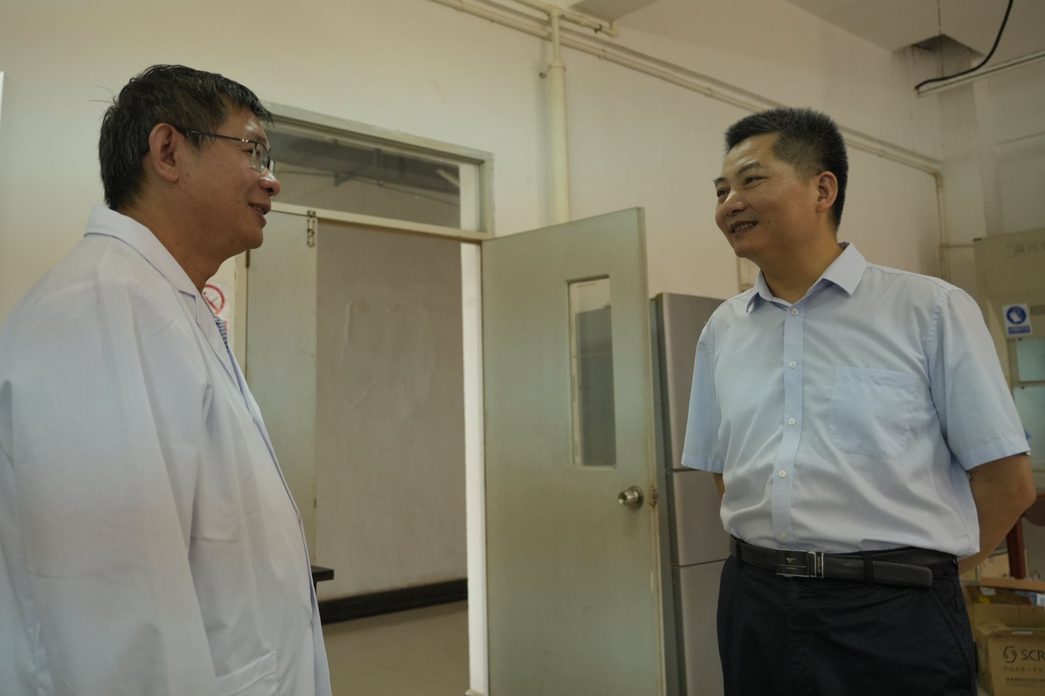 在第二实验楼机电实验中心和动力储能电池及材料省级重点实验室,伍复康详细询问留校师生的科研进展与实验安排情况。他表示,暑期是科研人员潜心攻关的宝贵窗口期,鼓励师生珍惜时间、专注研究,力争产出高质量成果,积极服务地方发展需求。他强调,建设“教师有尊严、学生有自信”的幸福校园是全校师生的共同目标,学校将坚持以师生为中心,持续优化各方面条件与服务。
