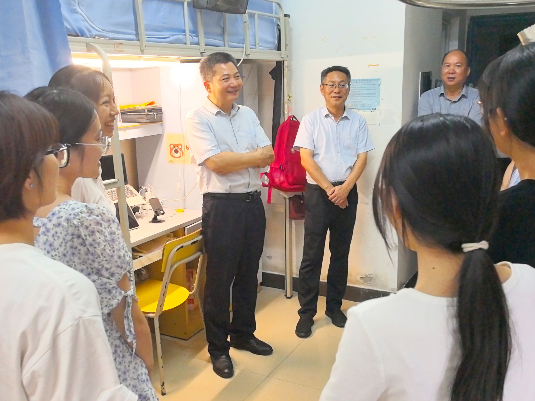 在学生宿舍,伍复康与同学们亲切交流,详细了解暑期学习生活情况,“复习进度如何?”“食堂饭菜是否合口味?”细致询问同学们的实际需求,并勉励同学们科学安排时间,劳逸结合。伍复康要求各部门做实做细后勤保障,为留校学生营造优质生活环境,让学子们安心备考、专注提升。