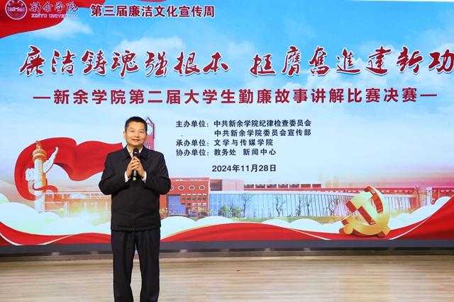 为加强新时代廉洁文化建设,11月28日晚,由校纪委和党委宣传部联合主办、文学与传媒学院承办的“廉洁铸魂强根本,挺膺奋进建新功”第二届大学生勤廉故事讲解比赛决赛在文E演播厅举行。校党委书记伍复康出席并讲话。校党委委员、副校长陈裕先,校党委委员、纪委书记刘志勇,校党委委员、宣传部部长曾浩武出席活动。各二级学院相关负责人,百余师生共同观赛。
