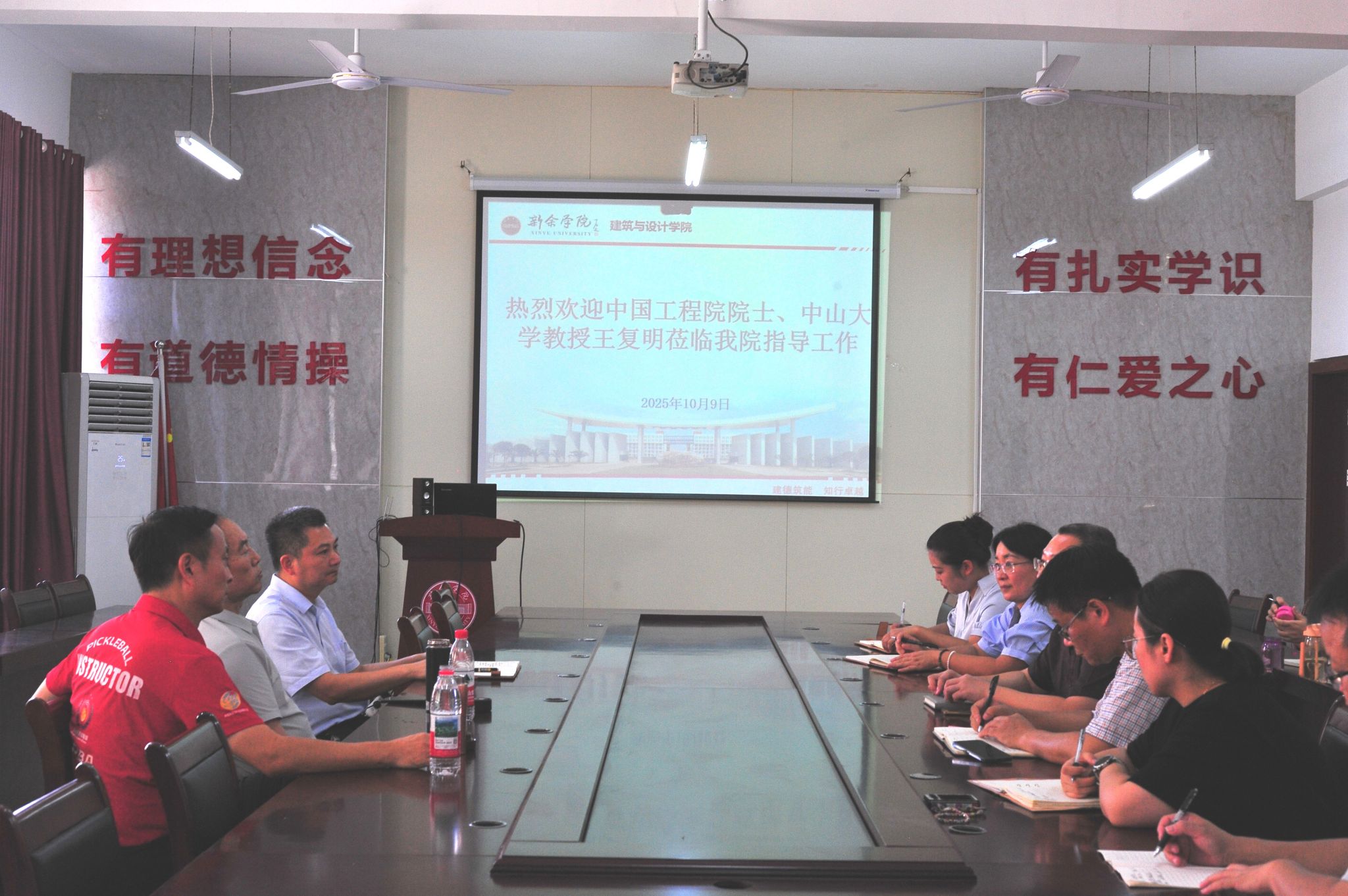 10月9日下午,中国工程院院士、中山大学王复明教授,全国政协委员、江西师范大学张玉清教授一行应邀出席建筑与设计学院学科建设规划研讨会。校党委书记伍复康出席会议并讲话。建筑与设计学院班子成员、科室负责人和教研室主任、督导组成员参加会议。
