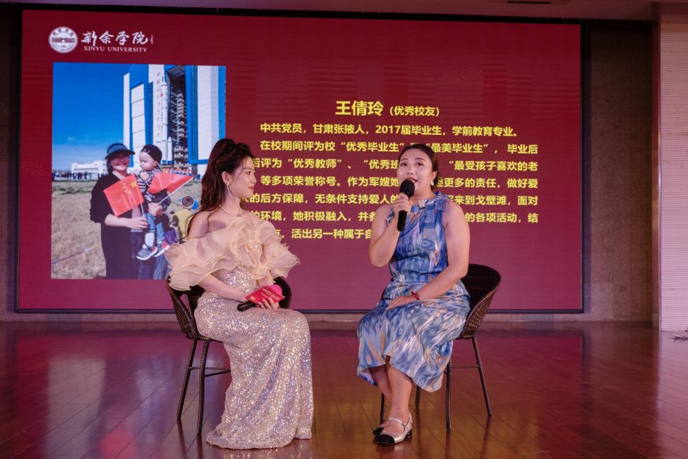 期间,国家奖学金获得者、学科竞赛学生代表、学霸宿舍代表结合自身的经历分享了各自的收获和体会。校友代表王倩玲讲述了自己的成长故事,她将个人的奉献精神融入时代洪流,把人生理想融入强国建设、民族复兴的奋斗中,与家人一起实现人生价值的“旅程”,赢得了现场阵阵掌声。
