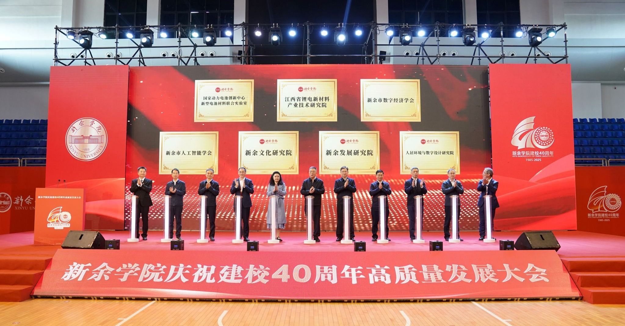校地企协同成果集中落地生花。国家动力电池创新中心新型电池材料联合实验室、江西省锂电新材料产业技术研究院、新余市数字经济学会、新余市人工智能学会、taptap点点官方网站新余文化研究院、taptap点点官方网站新余发展研究院和taptap点点官方网站人居环境与数字设计研究院七家研究机构和组织集中揭牌,覆盖新能源、数字经济、文化研究等关键领域,成为学校深化产教融合、服务地方发展的崭新平台。其中,新型电池材料联合实验室将聚焦固态电池、储能技术研发,助力新余打造锂电产业发展高地;新余文化研究院则设立天工文化、傅抱石艺术等七大研究方向,致力推动地方文化传承与创新。